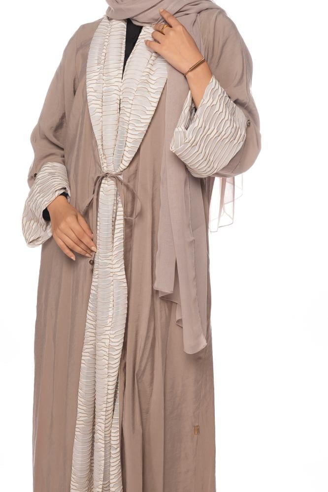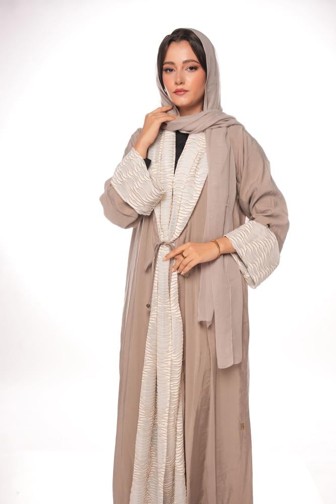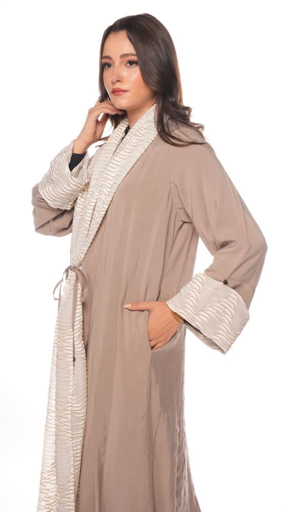 عباية تريندي كاجوال مصنوعة من المودال لون بيج وتصميم لف كلاسيكي مريح من لومار مع لون بيج بدرجة أفتح على الأكمام وطول العباية من الأمام. عباية عصرية ناعمة تناسب جميع الأعمار وتمنحك شعوراً بالبرودة والخفة طوال اليوم. تأتي مع طرحة سوداء هدية تتماشى بشكل أنيق مع هذه العباية وعباياتك الأخرى. عباية كلاسيكية بتفاصيل بسيطة هادئة لتتألقي بثقة في كل مناسباتك اليومية.