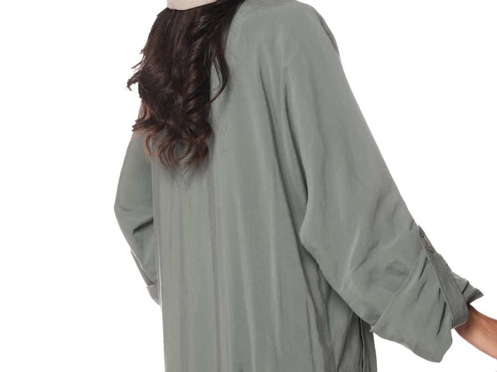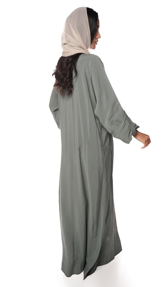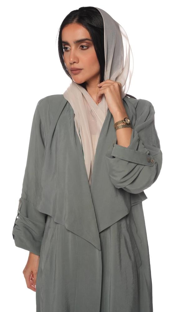 عباية لف عصرية من لومار. عباية عملية تفرض مظهراً أنيقاً وعصرياً بأسلوب بسيط راقي لإطلالاتك اليومية. عباية لون أخضر فستقي بتفاصيل عملية راقية مع جيوب جانبية وأزرار على الأكمام وفتحة سفلية مصنوعة من المودال الحريري الفاخر مع طرحة شيفون متناسقة لون بيج. عباية أنيقة تنساب بشكل ناعم ومريح بذات الوقت لتتألقي في مناسباتك من دون أي قيود.
