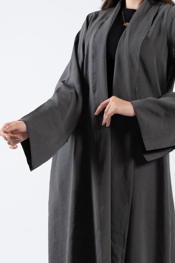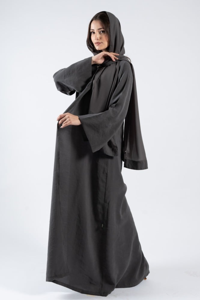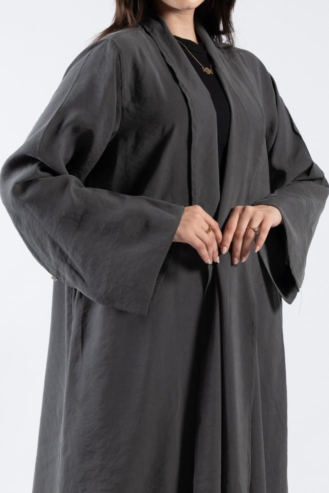 عباية يومية مودال لون رمادي غامق وتصميم انسيابي مريح من لومار. عباية مريحة وناعمة تفرض حضورك العصري وتمنحك شعوراً بالبرودة والخفة طوال اليوم. مصنوعة من قماش المودال والبوليستر تناسب أشد الأيام حراً. عباية عصرية بتفاصيل بسيطة وراقية لتتألقي بثقة في كل إطلالة مهما كانت.