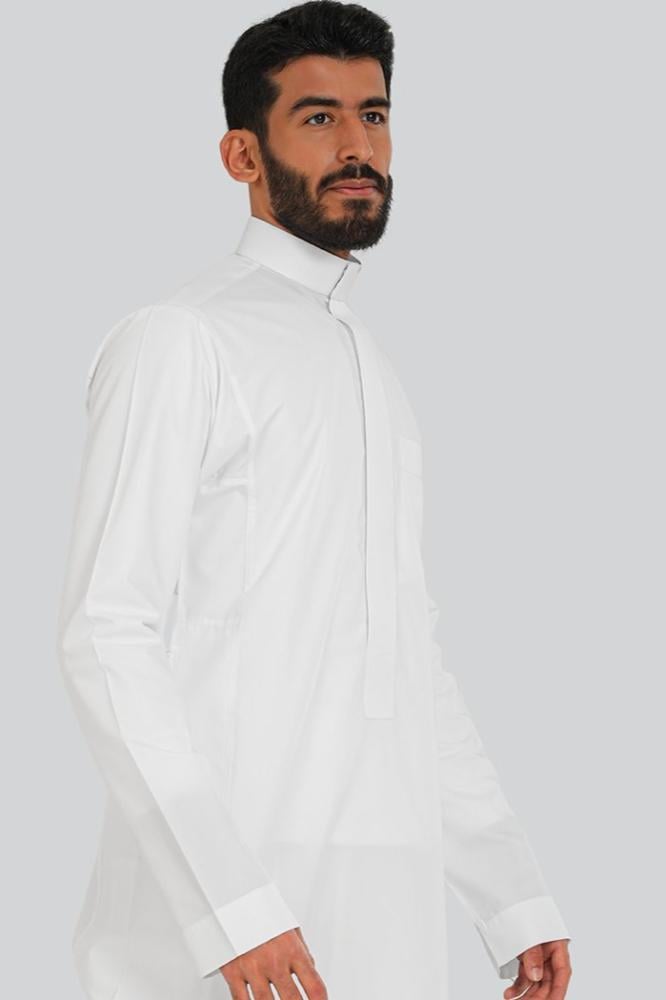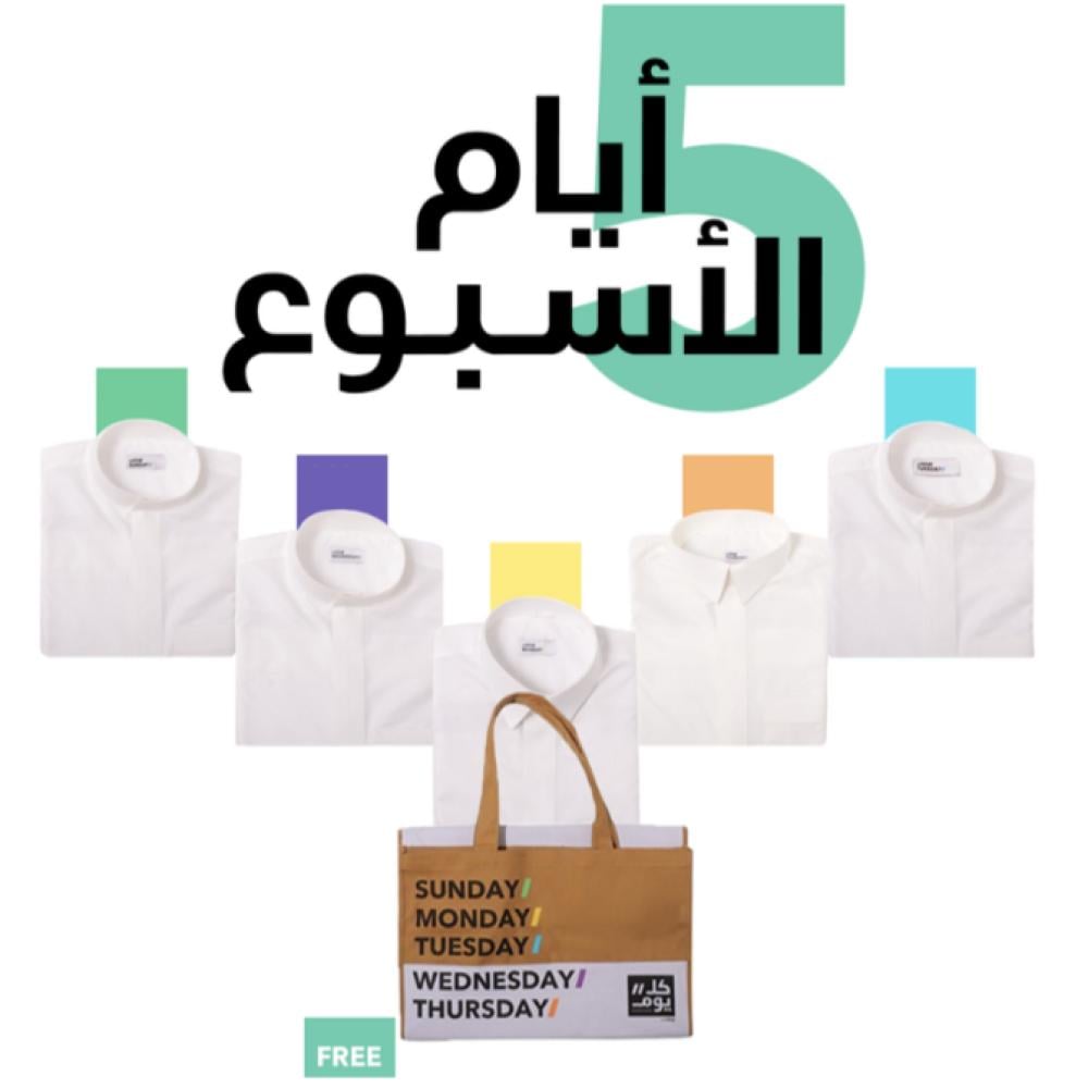بكج 5 أثواب رجالية بيضاء لأناقة متجددة كل يوم من أيام الأسبوع تغنيك عن الحيرة في اختيار ما ترتديه كل صباح. بتصميم كلاسيكي أنيق يلائم نمط الحياة العملية للرجل العصري. مصنوع من البوليستر والقماش المخلوط البارد بتصميم مميز بسحاب مخفي وأزرار معدنية فضية مربعة الشكل تحمل هوية لومار.