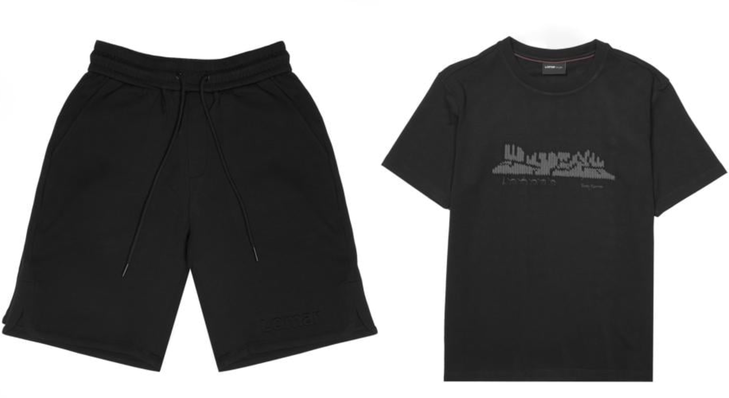 تتطلب الإطلالات الليلية المريحة ملابس رياضية رجالية بألوان داكنة. تيشيرت رجالي أسود يتضمن لمسة تصميمية بسيطة وأنيقة على الصدر مع شورت رجالي داكن بجيوب جانبية.