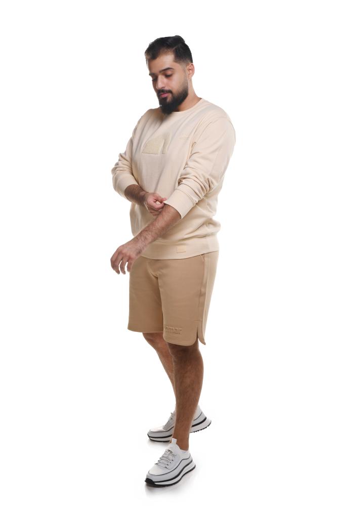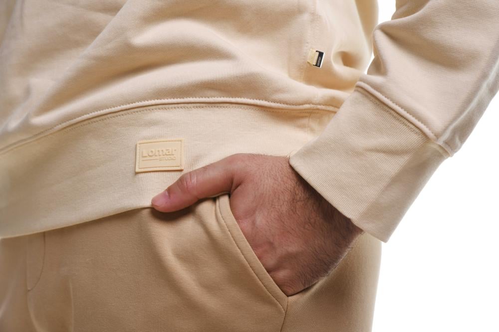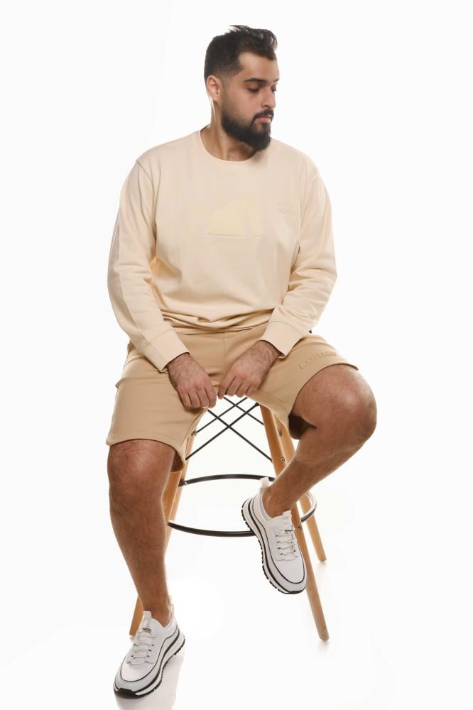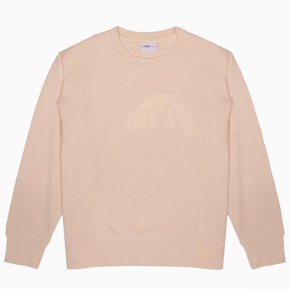 Lomar Men's Elephant Rock T-Shirt in beige. Made from high-quality cotton for warmth and durability for repeated use. A simple, casual design with long sleeves and a print of AlUla's famous Elephant Rock on the chest with the embossed Elephant Rock logo makes it ideal for cooler days.